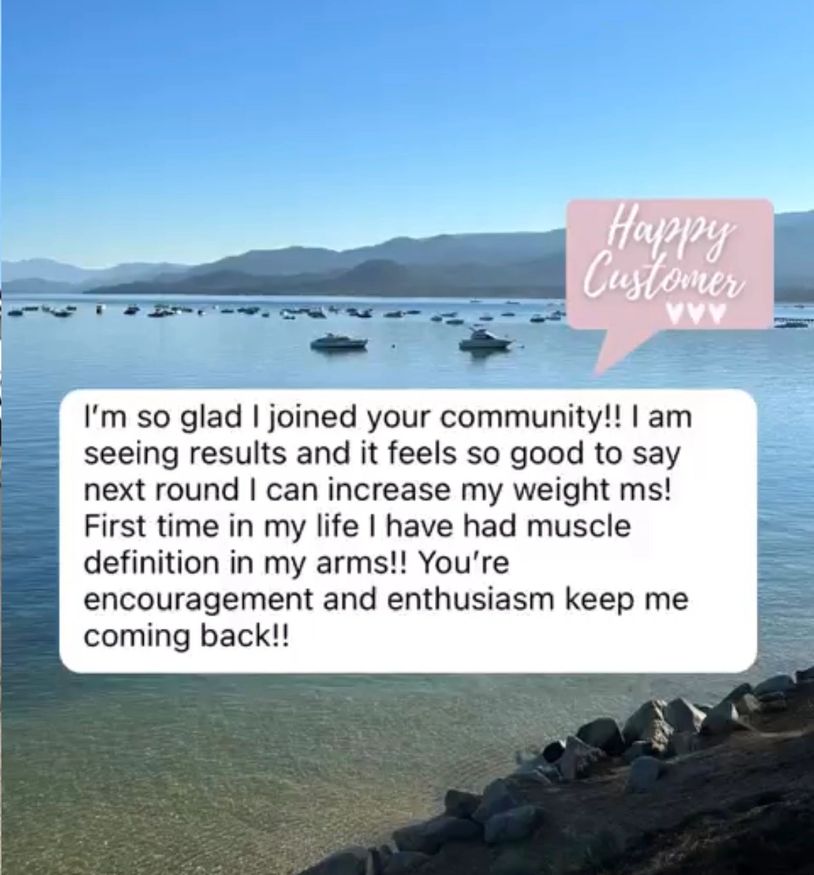 Between workouts you'll have daily support inside a private community of women who are doing exactly what you're doing. Women who understand the 2am wake-ups, the afternoon crashes, the frustration of trying everything and feeling like nothing is working. Women who show up, celebrate each other, and make the hard days easier just by being in the room.