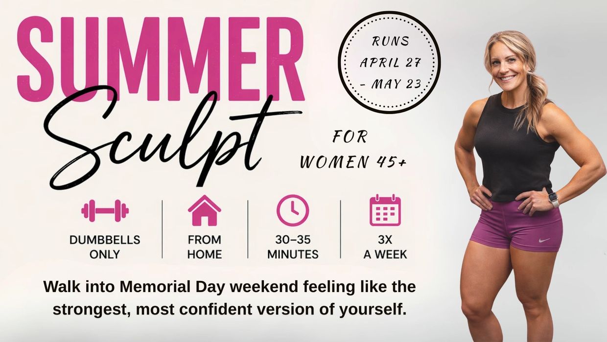 Summer Sculpt is a 4-week progressive strength bootcamp designed from the ground up for women 45+ in perimenopause and menopause.